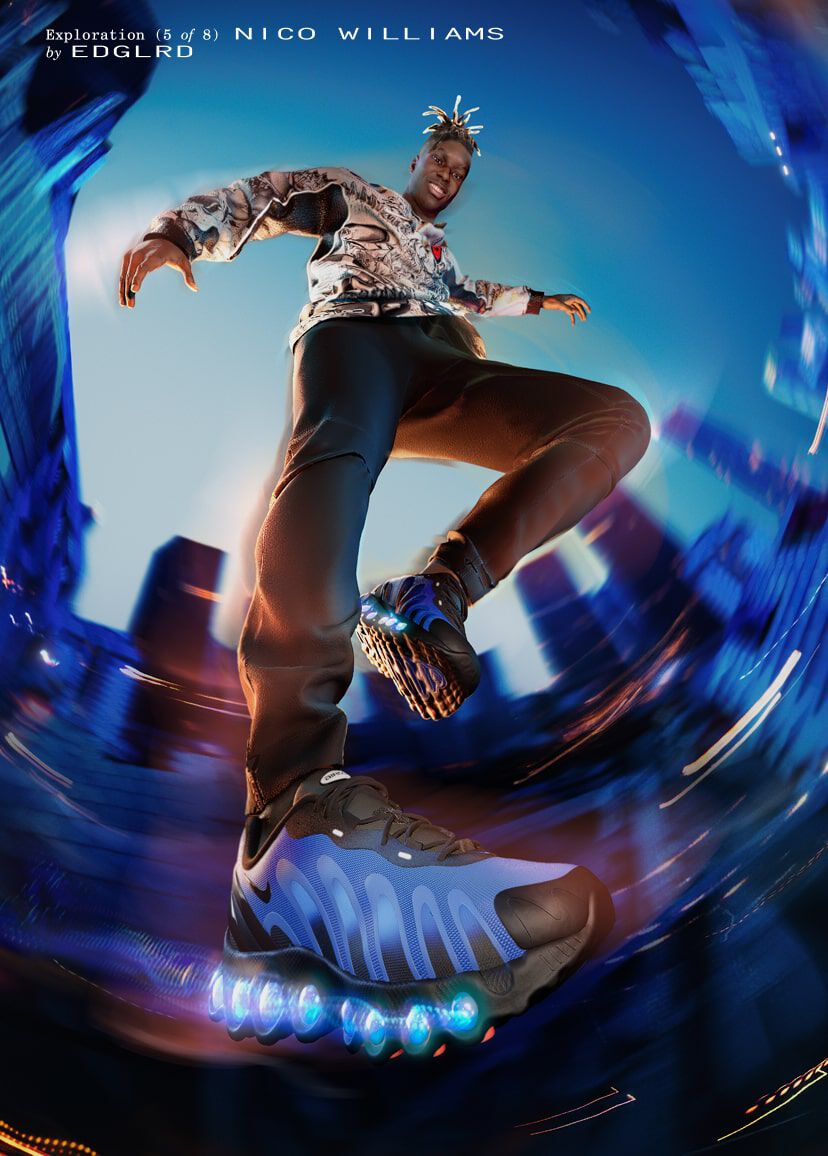 مستوحى من طاقته في الملعب، حيث يجسّد الفريق الإبداعي EDGLRD من ميامي المهاجم الإسباني نيكو ويليامز وهو ينطلق ويتجاوز العقبات وسط مشهد متغير.